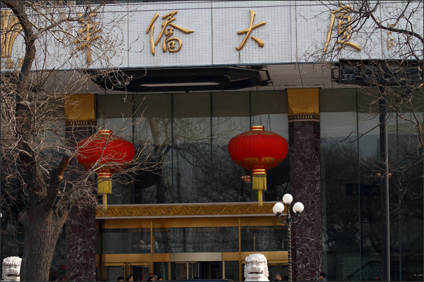 沿着王府井大街往南走,路过华侨大厦西门。