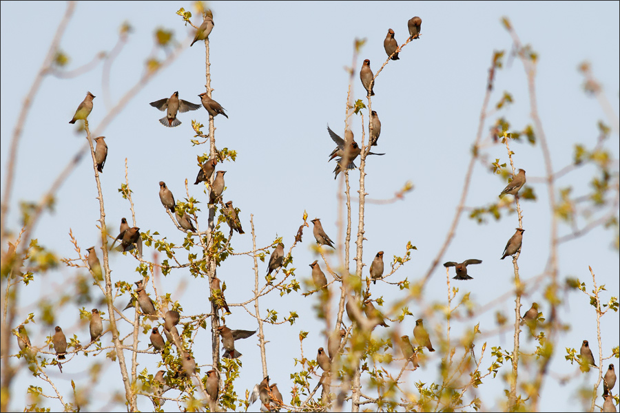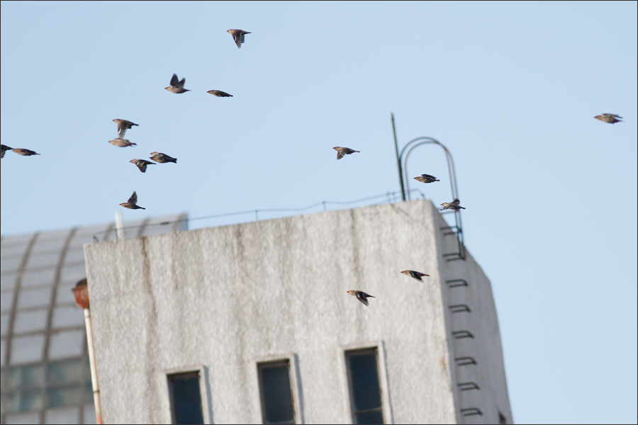 | 从19号开始,小鸟们正式启程,分期分批北上。呼啦~~飞走一群,过一会儿,呼啦~~又是一群…… 我一直以为它们最终的去向会是东北,因为印象中它们的老家是在西伯利亚。但是很意外,几乎所有鸟群都是飞向西北。 断断续续的启程行动一直持续了两天。4月20号过后,太平鸟在这一带完全绝迹。 ![]() |