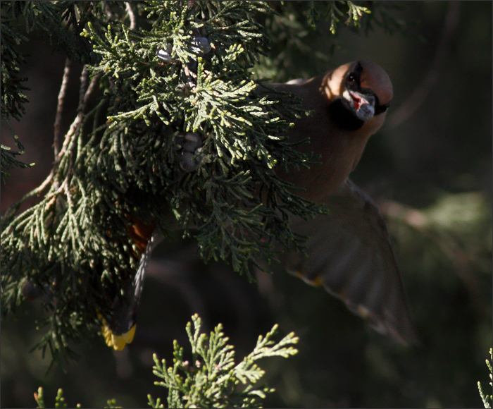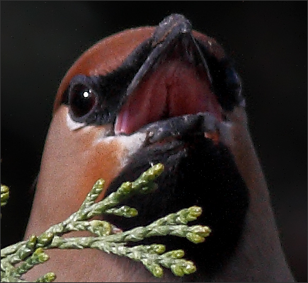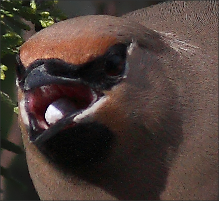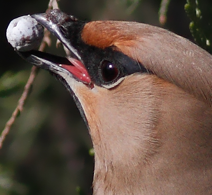 据鸟书描述:太平鸟“多喜食蔷薇果及其他浆果类。春夏季以昆虫为食。有时暴食到几乎不能飞行。” 暴食?!暴食到几乎不能飞行?! |