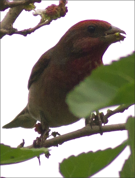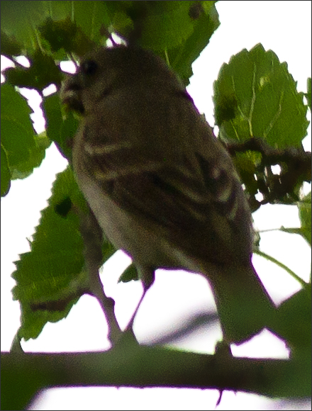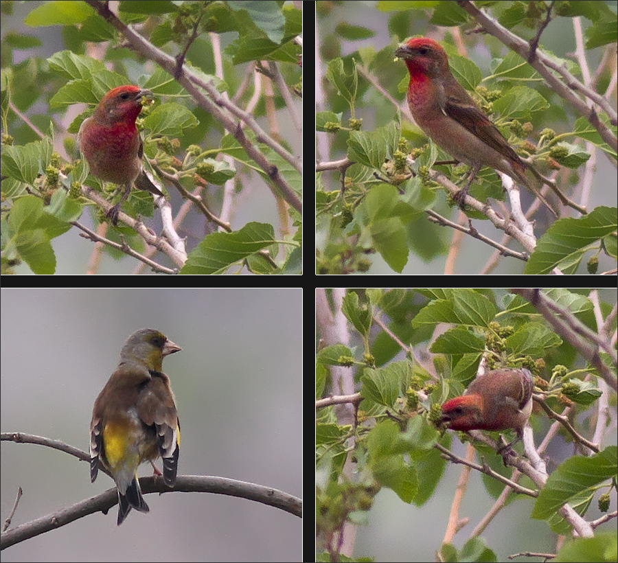 | 去年见到普通朱雀,以为纯属偶然,没指望今年再见到它们。很意外它们也在这里! 时阴时晴的天儿,此刻正阴,树影下光线太暗了,只有“记录版”。