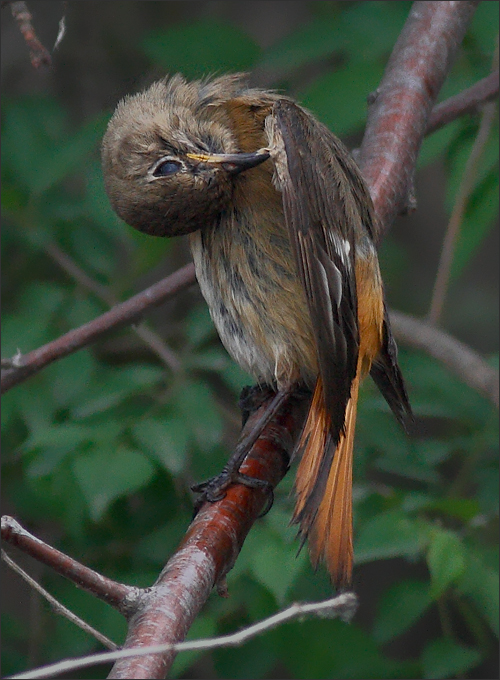 准备离开那里时,又见到朱雀了,在稍远一点的枝头上,有金翅雀跟它们在一起。![]() |