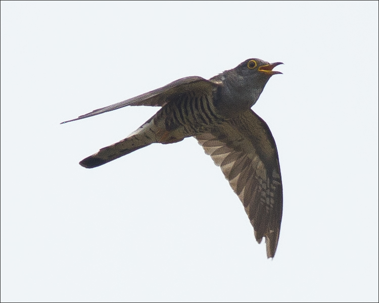 当天另一次,这只杜鹃从北边林子里飞出,迎面而来,飞过我的头顶。左图是由远而近的三图合并。