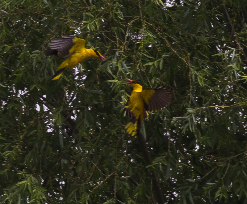 已经是连续第四年了,在繁殖季节里见到杜鹃不怀好意地尾随黄鹂!