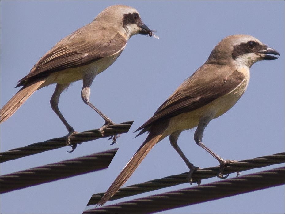 | 路北另一窝,我觉得是棕尾伯劳——主要是因为显著的翼斑。 他们的眼纹好象是褐色? ![]() |