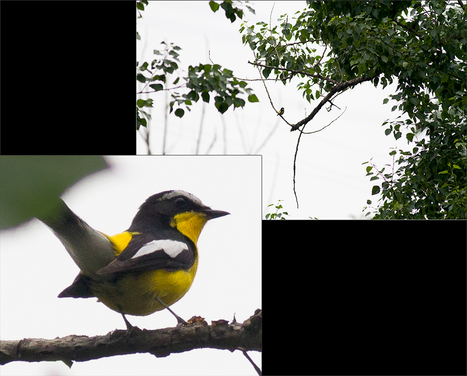 | 6月1号再次进山,到处转了半天,仍有叫声,仍不见鸟影。 几近绝望之际,蓦然回首,那鸟儿却在远处枝头上! ![]() |