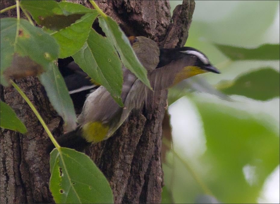 | 这张看着象是幼鸟乞食,其实不是。这次是GG要进洞,MM正好出来,俩人打个招呼。 实际上,洞中的幼鸟什么样,我自始至终一眼都没看见! ![]() |