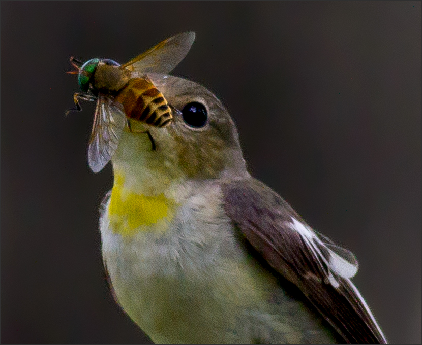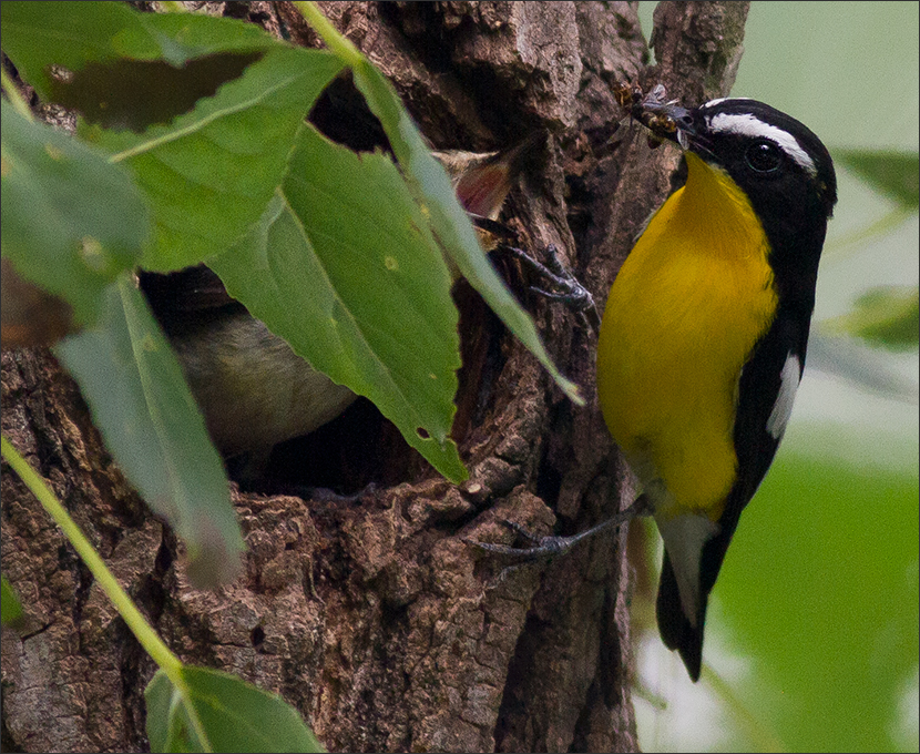 | 真正的安全是早日离巢,所以爹妈只能拼命喂! 以下组图是“食物多样性”。我还记得灰椋鸟父母喂养幼鸟是“晕素搭配”,那样,取食的范围会大得多,难度也小得多。而白眉姬鹟的幼鸟看来好象只吃肉?!白眉这类小鸟远不如灰椋鸟们繁育能力强,不知是否与此有关。
