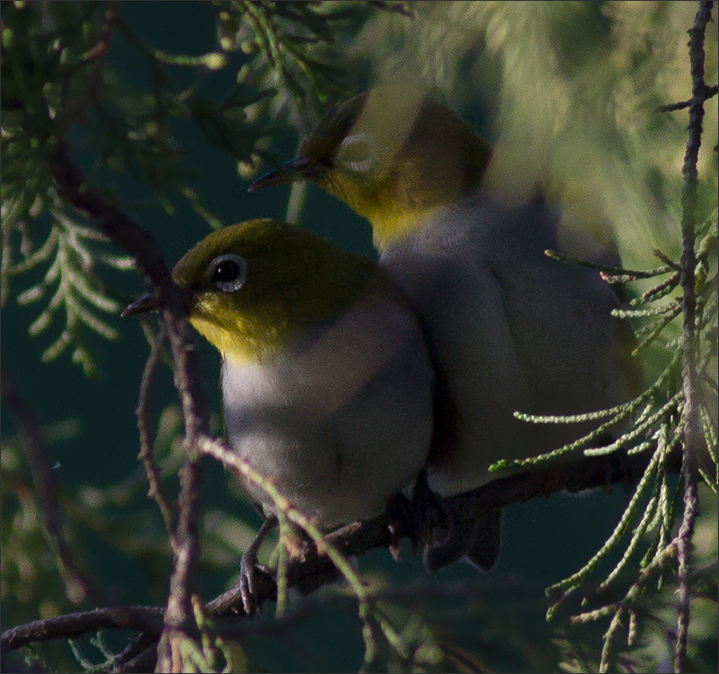 这两只吃饱了,跑到我窗前最近的柏树上躲着休息。那么大的树,两人偏要挤在一堆儿,傻乎乎的,看不出它们到底是两口子还是母子,也说不定是小兄弟姐妹。![]() |