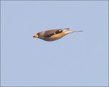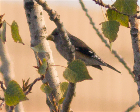 | 最后这只黑尾蜡嘴雀出现在一个月之后,那时已是11月初了。蜡嘴雀停留的地方跟山椒鸟差不多,但这时大杨树已经飘落了很多树叶。初见它是在早上8点,一晃便不见了。9点半前后又拍到一个飞版,我觉得很可能还是早上那只。 回想史上几次见到蜡嘴雀都是单只,它们大概一直都是这样千里万里独往独来的。(本专辑结束)