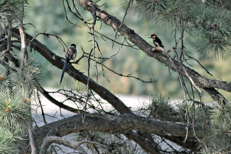 后来,一只小啄木鸟飞来落在近旁的松枝上。小啄木鸟一声不响,灰喜鹊也一声不响,它们俩就这样安安静静一起坐到天渐黑。当时那个情景,给我留下很深很深的印象。