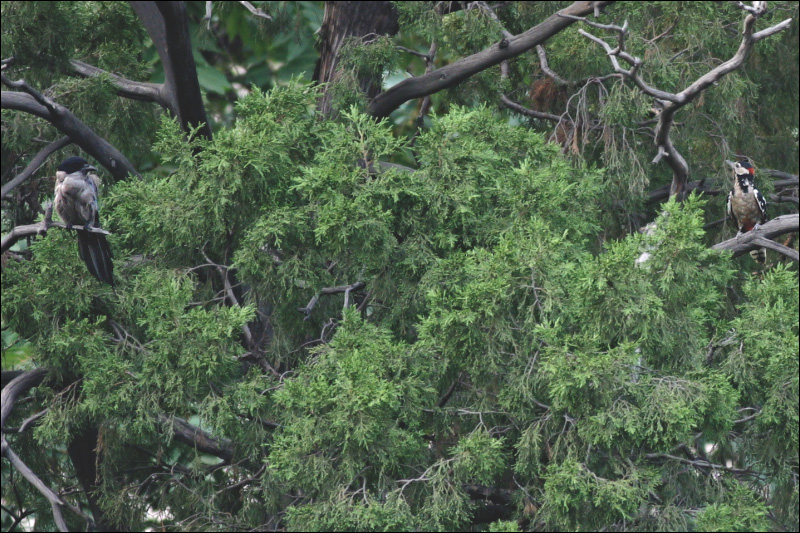 本页第一张照片摄于2007年6月4日。那天下午,我拍到一只灰喜鹊停在远处一棵大松树上,它在那里一动不动坐了很久,直至黄昏慢慢地降临。我从没见过任何灰喜鹊能象这样安静,猜想这大概是一只病鹊,或者它很可能是老了。
