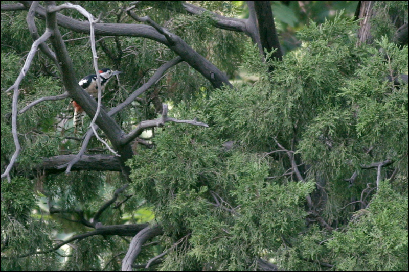 西边大柏树上的这个位置,是它们最常相聚的地方——