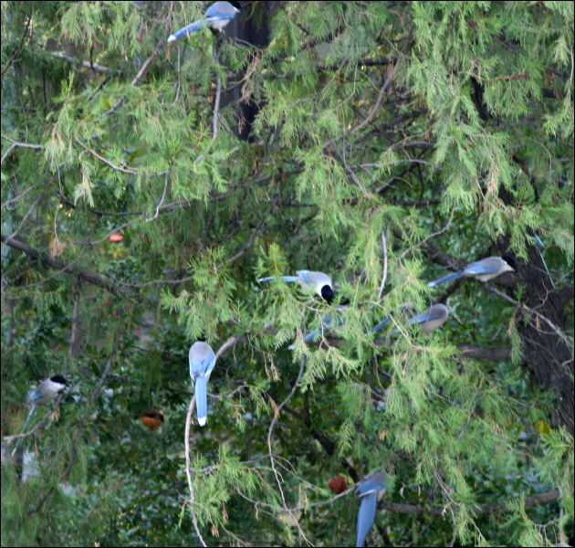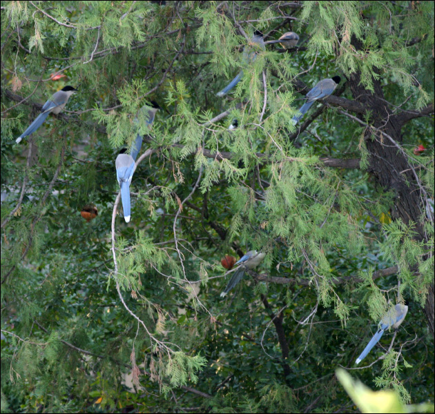 | 这天黄昏时分正在窗口拍片,忽然听见远远近近灰喜鹊一片乱纷纷拖着长声的怪叫。我知道这是它们在报警时才会用到的特殊叫法,但有这么多家伙同时报警我还是头一次听到。 | ![]() |