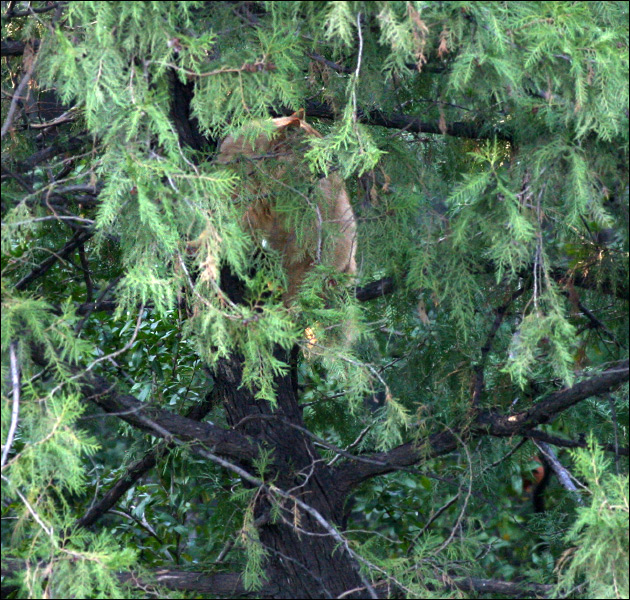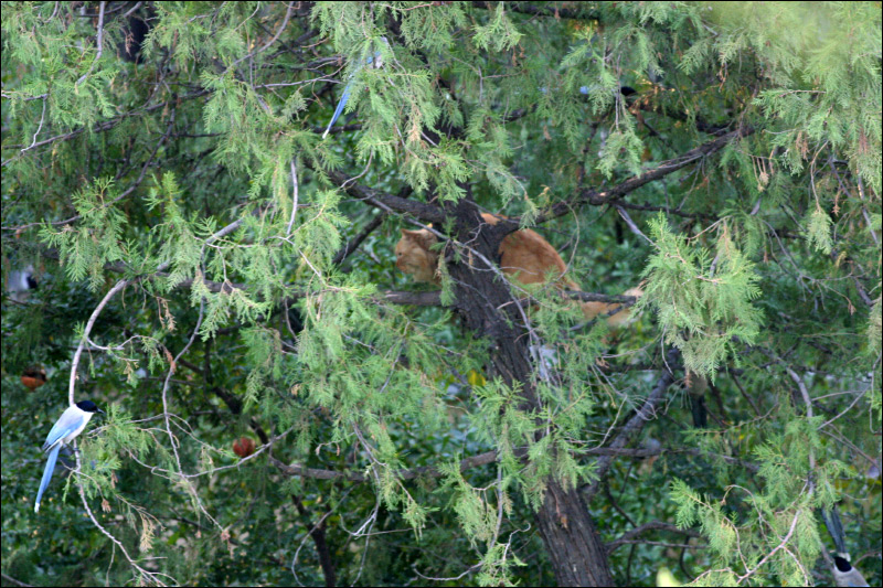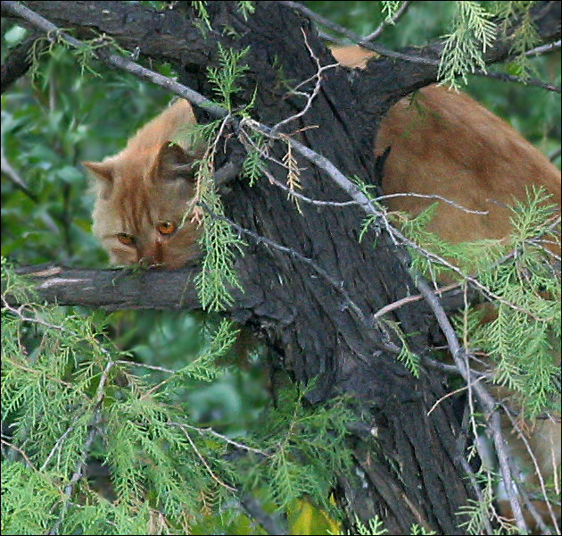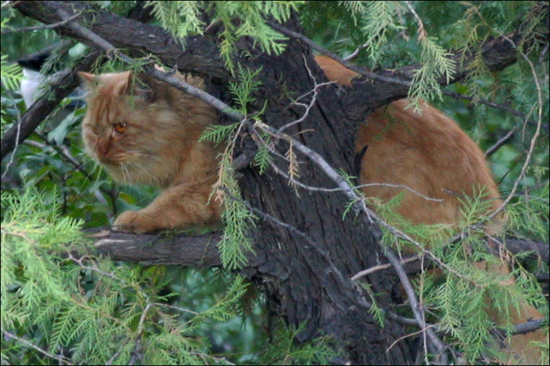 刚开始我真没反应过来到底出了什么事,直到把镜头拉近才恍然大悟——原来是猫猫又上树了!![]() |