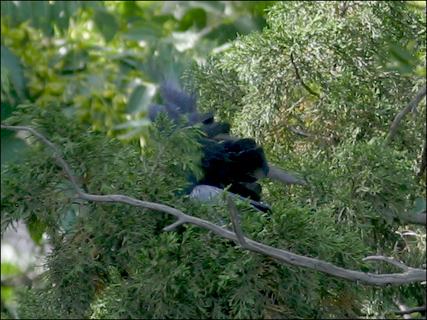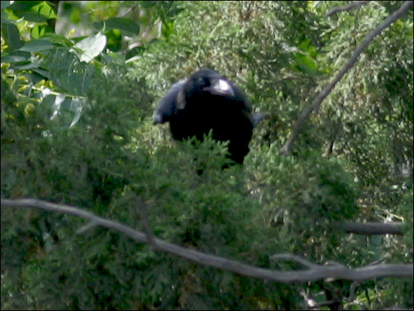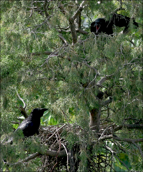 四次失败之后的小鸦显得很挫折,他完全撤退了,一直退回到自己家——老柏树上的巢底下。我一边笑一边很原谅地看着他,我也希望他先好好休息一下,慢慢来。他才一个月大啊!