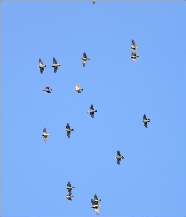 | 我真没想到,它们最后选择的突围方向是正东!那恰好是大鹰迎面逼来的方向,它们是正对着大鹰直冲过去。这是什么意思呢?刹那间我甚至联想到甲午海战中的——“撞-沉-吉野 !!” 不会吧?这么狠?! (下图中“头鸟”的位置和姿态非常清晰,可以想象它为什么能出任“头鸟”了。) ![]() |
