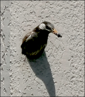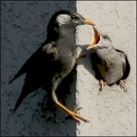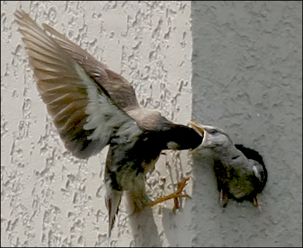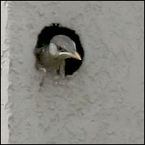 小瘦猴儿今天仍然没有飞出洞穴的意思,辛勤的喂养今天也仍然还在继续。但情况与昨天相比有了显著改变——爸爸妈妈飞来喂食的次数少了,频率低了,间隔的时间越拉越长,让人感觉他们在对这个孩子好象快要失去信心。 |