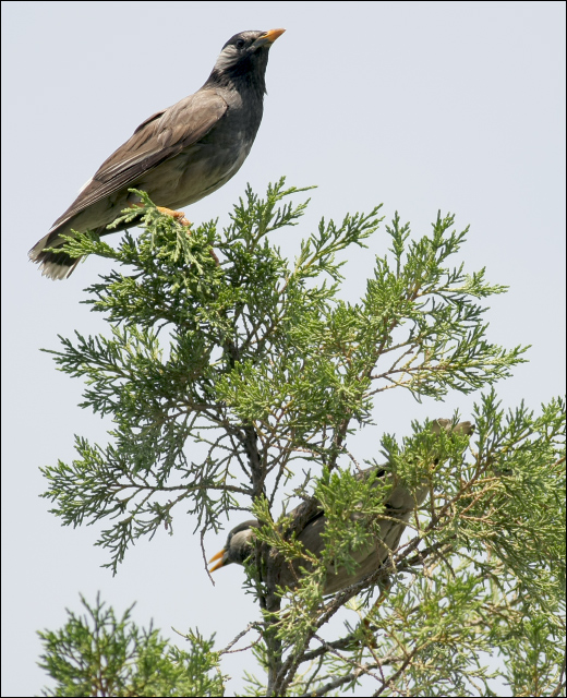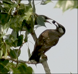一只小麻雀好长时间陪在椋妈妈身边跳来跳去。我早就发现小麻雀极具同情心了,不管别人遇到什么麻烦,它们总是飞到近前去陪着。即使对一帮成天干坏事的贼,它们也是一样。