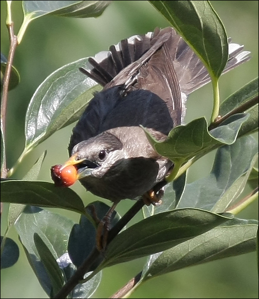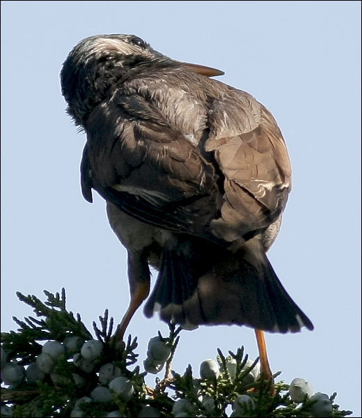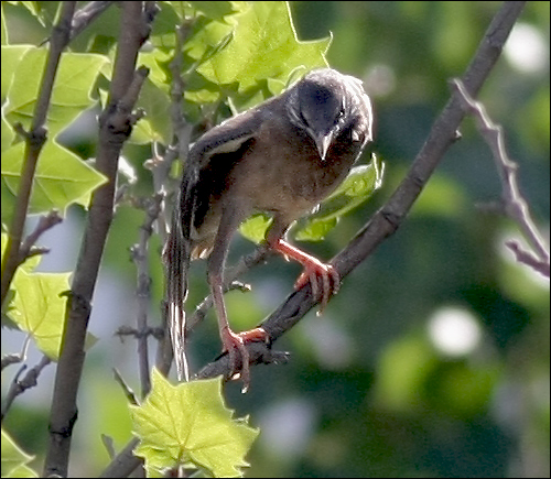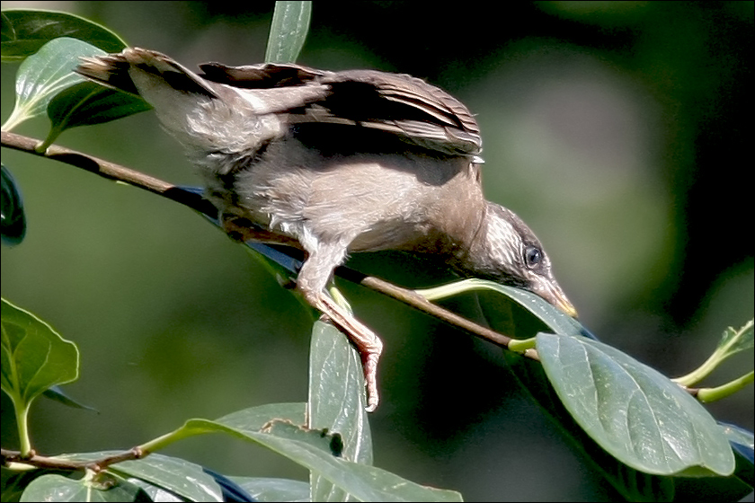 那眼前这个还在学飞的小傻子真的就是小瘦猴儿了?!他如果出了洞,一时还不可能飞得太远,而我们院子里这两天没有其它任何灰椋鸟的幼鸟在活动,只有今天这一只!观察半天之后我渐渐相信,确实是他!他右边的翅膀好象有点儿不太对劲,也许真的有过什么伤,经过这几天时间已经大体自愈?……就算我是瞎想吧,反正都不重要了,他已经可以飞上那么高的楼顶!