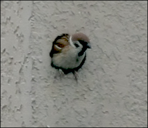 自小椋离开洞穴之后,小麻雀就经常去那里探头探脑,但还是显得心有余悸。直至三天之后,6月16日—— 那天有大雷雨,在大雨落下来之前,我看见小麻雀终于正式搬回了自己的家。 |