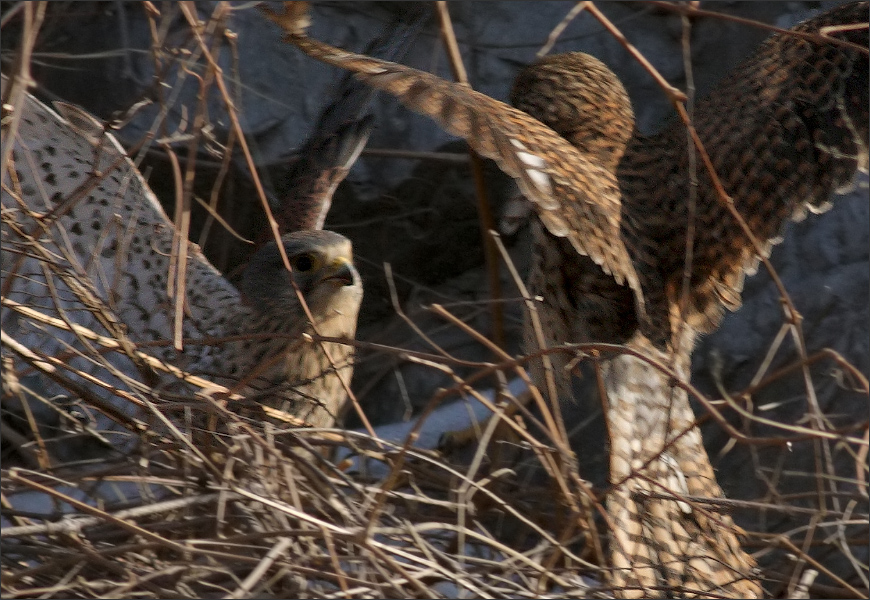 | 我还没反应过来是怎么回事儿,身后突然传来一阵异常尖厉的大叫声——原来是红隼MM从河滩下面呐喊着冲上来,直扑小GG而去。 拍鸟已有三年了,我还从没听到过任何猛禽的叫声,这是第一次,而且很近。 ![]() |