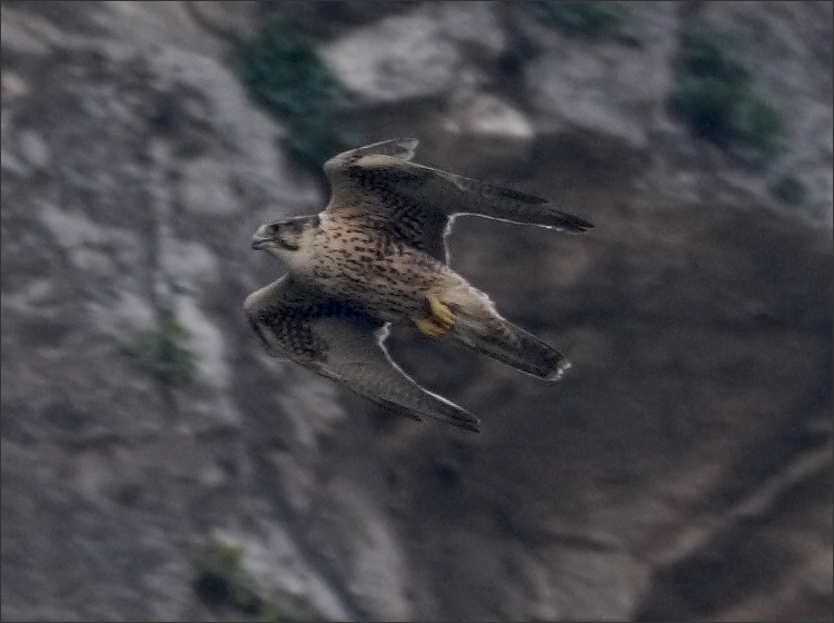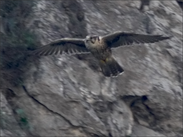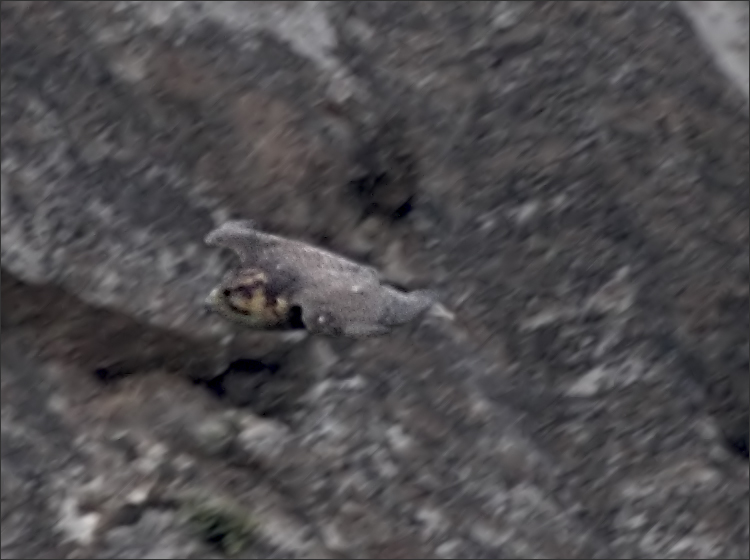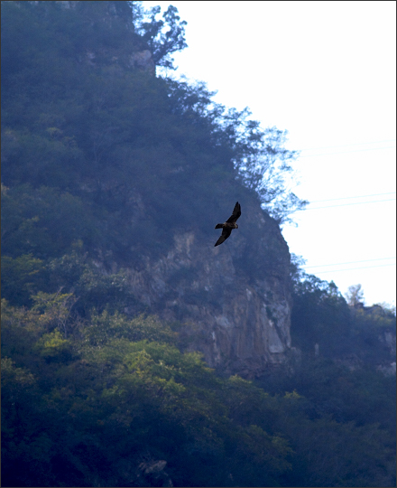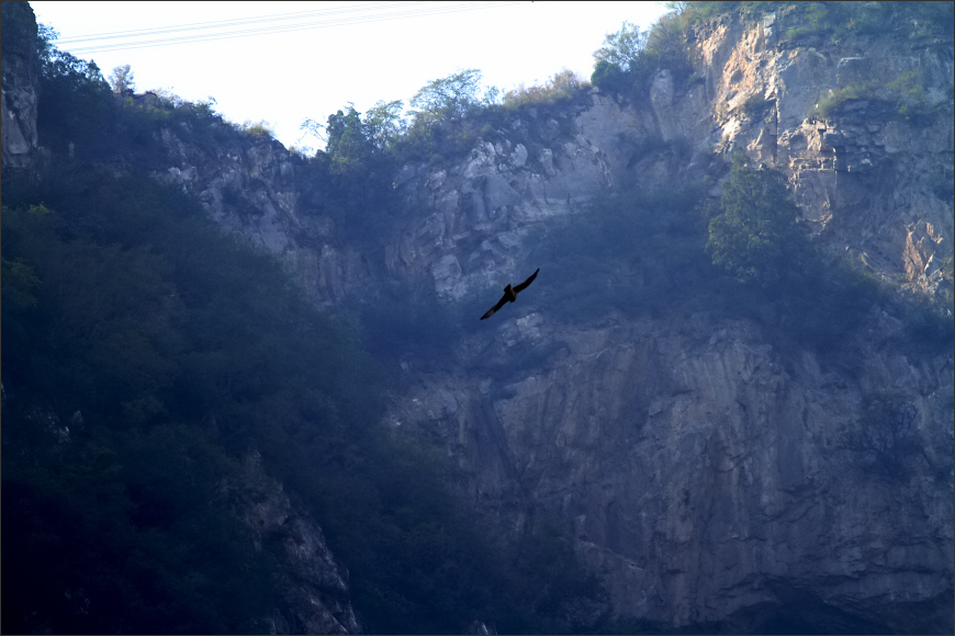 从起飞到俯冲,它一直就是这个姿式,我没见它的翅膀有任何动作。它肯定是利用了崖壁前回旋上升的气流,否则无法理解飞行的动力是从哪来的。