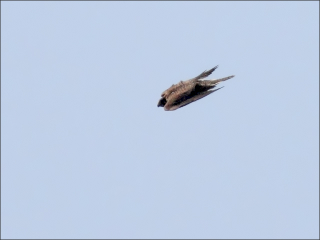 那天时时有蜂鹰、黑耳鸢、普通狂等络绎不绝陆续从空中盘旋而过,其间有一只猎隼(sun3)紧贴山脊飞来。刚开始我并没特别留意它,后来见它转转悠悠,并不象其它大鸟一样稍作盘旋即扬长而去,才开始好奇。 |