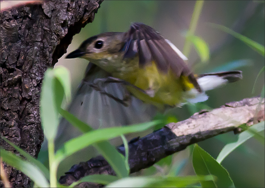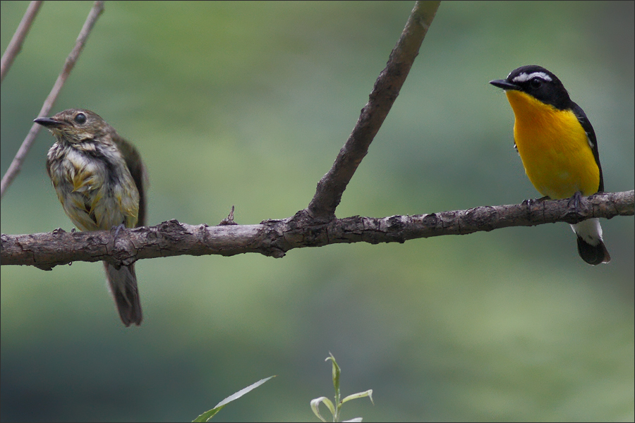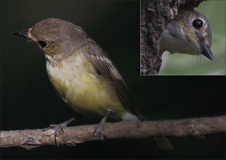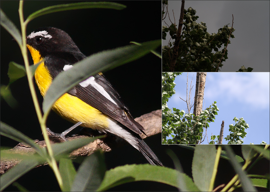 正在关注姬鹟的时候,有黑枕黄鹂幼鸟飞到附近枝头上来玩儿。当时黄鹂不只一只,稍远处大概有小黄鹂的父母。 |