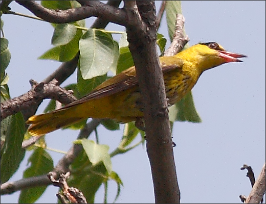 我见过第二年的小黄鹂,羽色已经长得跟父母差不多。这只腹部斑纹密布,猜测为今年刚刚诞生的小崽子。只见它喧闹了一阵子,后来不知飞到哪儿去了。