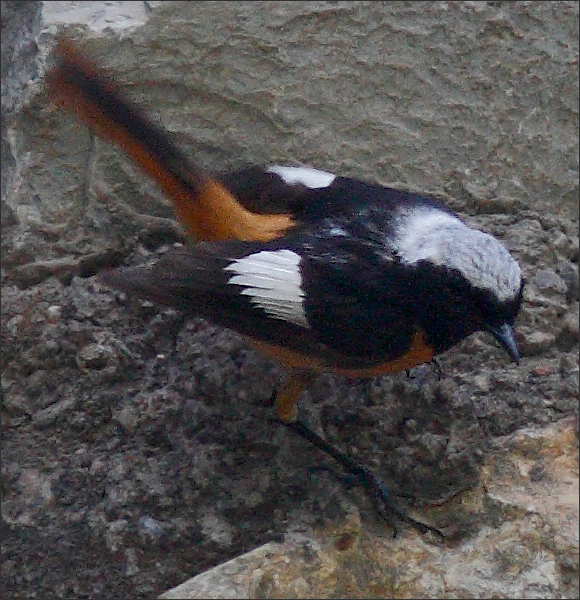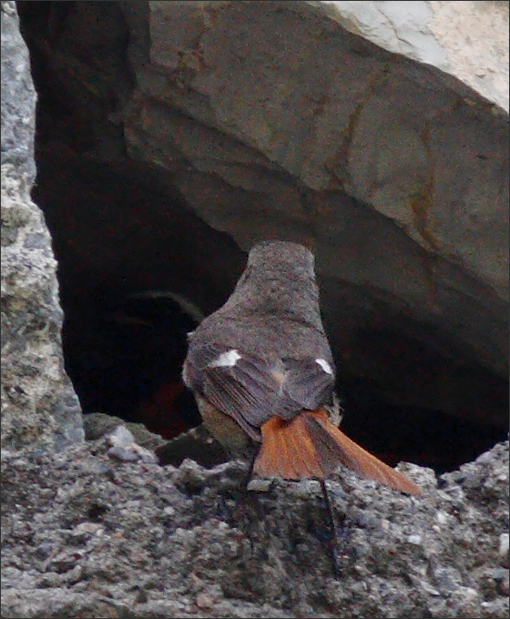 西边背阴山坡上,一对北红尾鸲正跳上跳下忙个不停。小GG特别活跃,在各处坡坡坎坎之间反复踏勘,每一处细小的岩洞都要贴进去看一看,象是在寻找巢穴,准备繁育。
