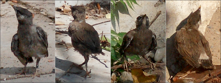 从昨天凌晨到现在,这只小鸟一步一步地给了我太多的意外:突然离巢,突然离开门球场,突然消失,突然出现在东小院儿,再次突然消失,然后,突然出现在这里!