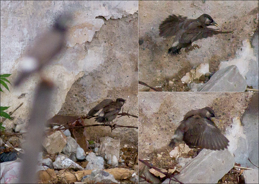 让我非常揪心的是:爸妈并不总是在这里,它们双双来去,过一会儿就会消失一阵儿。最长的一次曾有20来分钟无人看护地面上的小椋。也许爸妈是去为小椋觅食,也许在别的什么地方真有另外一个孩子同样需要照料?搞不清。难道它们就不能分工一下,一人管一边儿吗? |